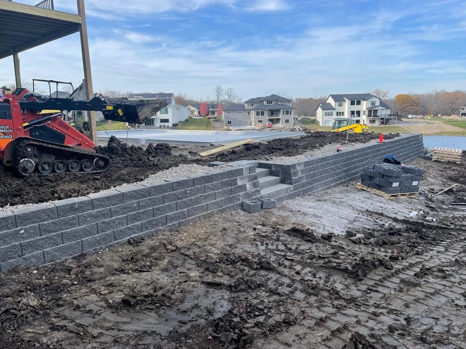 Do I absolutely need drain tile behind a retaining wall? Yes. Without proper drainage, water gets trapped behind the wall. In Iowa winters, that water freezes, expands, and will quickly push your retaining wall over. Drain tile is a mandatory step for our hardscape projects.